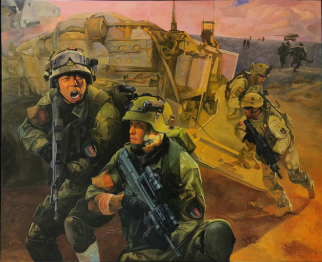 此次展览以习近平新时代中国特色社会主义思想为指导,深入贯彻强军思想和习主席关于文艺工作的重要概述,是新时代美术创作的一次集中检阅,展览面向全国全军征集优秀美术作品,也是五年一届的全国性美术大展,将于8月1日-11日在中国美术馆进行展出。按照中国美术家协会全国美展标准和要求,聘请军地专家组成评审委员会,组织初评、复评,初评入围作品共计758件,最终复评入选作品472件。其中油画作品共144件,我省共有三位艺术家入选,91九色