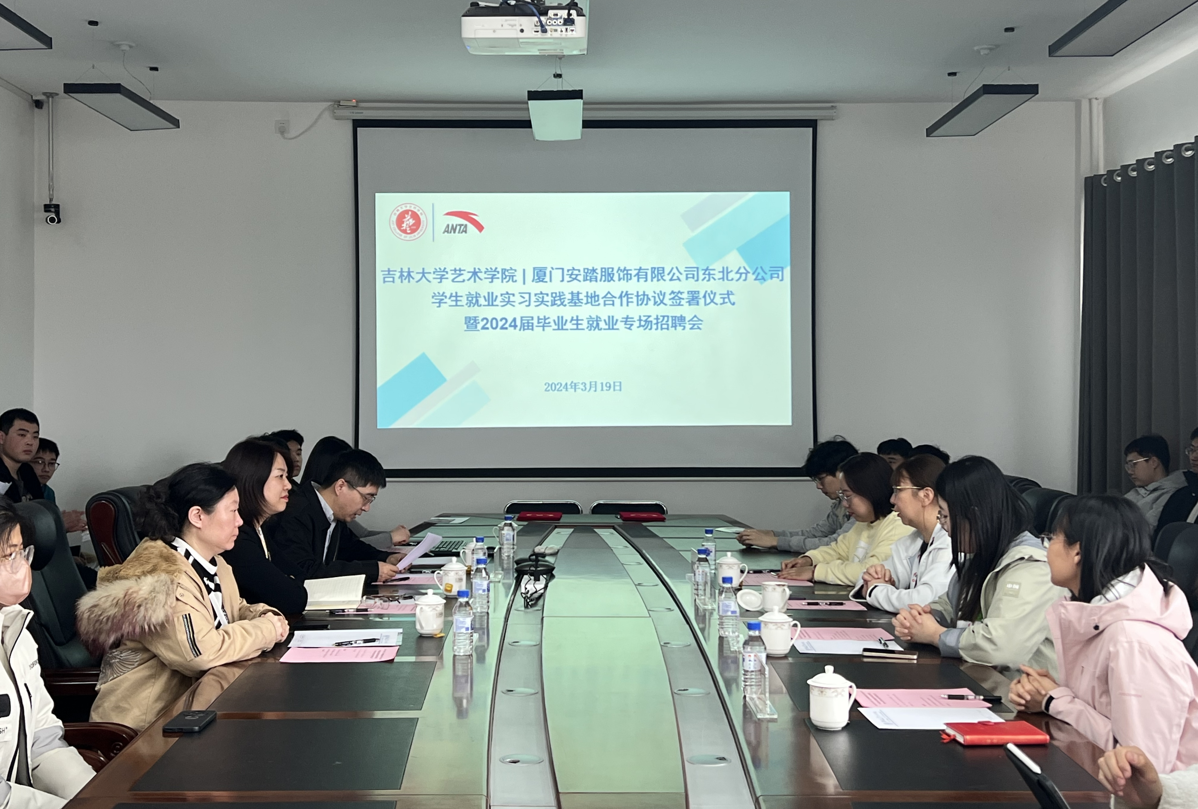 与厦门安踏服饰有限公司东北分公司在萃文楼430会议室签署共建学生就业实习实践基地合作协议,并举行2024届毕业生就业专场招聘会。学院党委书记冯彦杰,党委副书记兼副院长曲珩,厦门安踏服饰有限公司东北分公司人力资源副总监汪淼,哈尔滨办事处人力资源经理王玮玉,长春办事处人力资源经理汲升文,东北分公司儿童品牌事业部人力资源高级专员鲁艳超,师生代表参加会议。会议由曲珩主持。