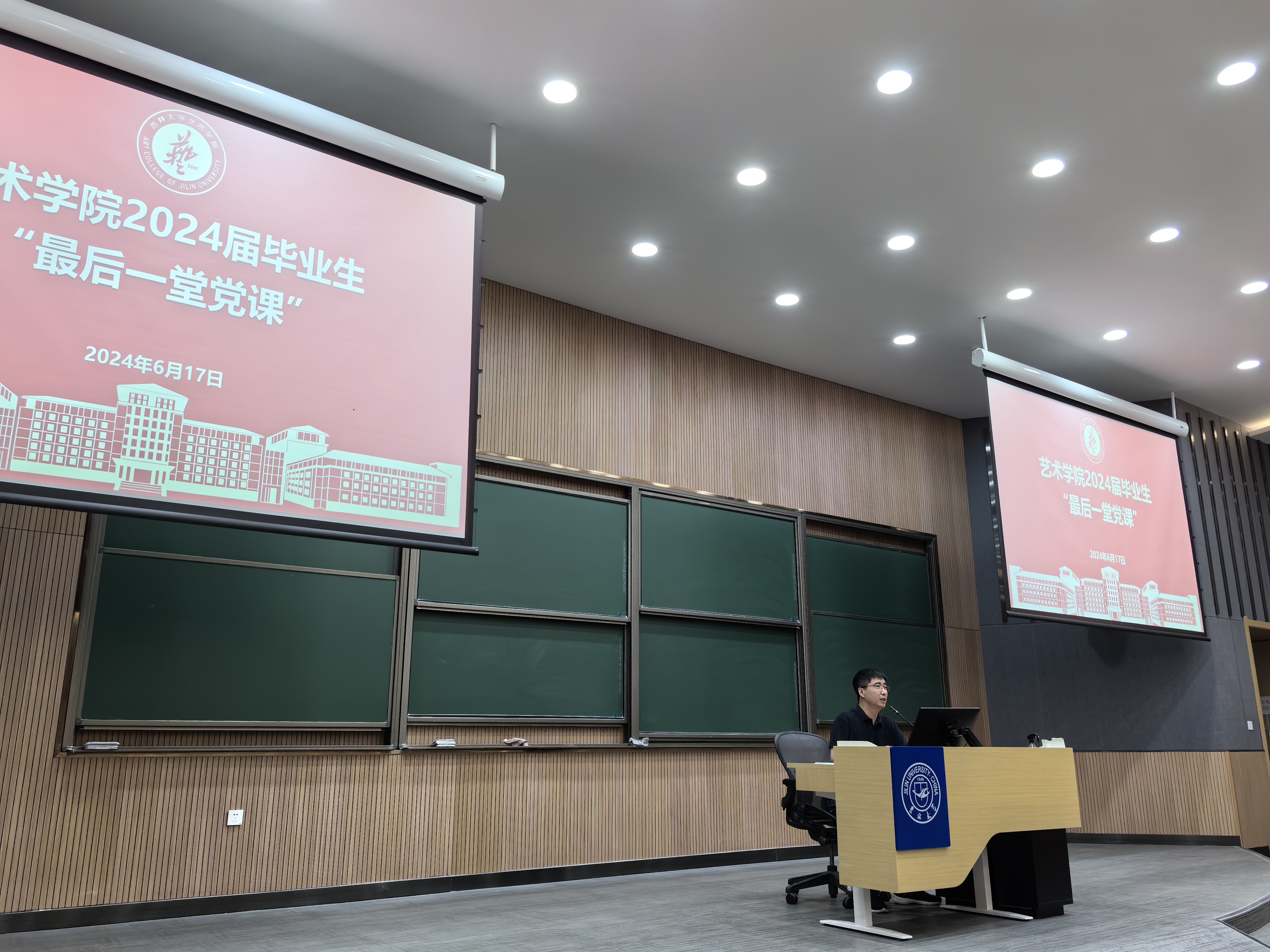 为切实加强毕业生离校教育,引导广大毕业生在学思践悟中坚定理想信念,在实践中锤炼修养,增强爱党爱国爱校情怀,6月17日下午,艺术院党委书记冯彦杰为学院2024届毕业生讲授“最后一堂党课”,2024届全体毕业生、毕业年级本科生辅导员和研究生秘书参会,会议由学院党委副书记兼副院长曲珩主持。