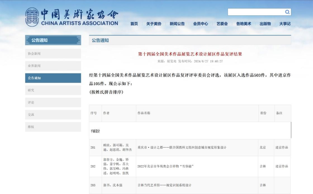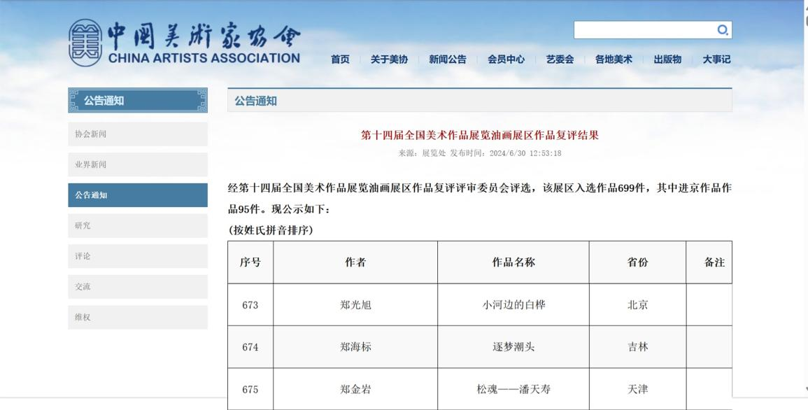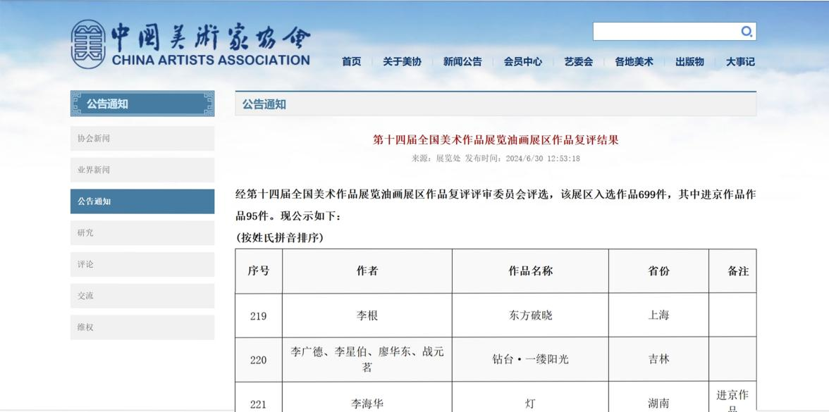 近日,中国美术家协会官网公布了第十四届全国美术作品展览作品复评的结果。91九色
