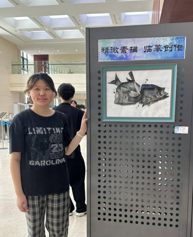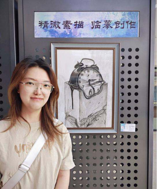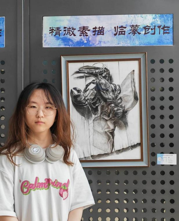 画展上,2023级唐敖庆理科试验班物理学基地魏文波同学的作品《猫的凝视》吸引了众多观众驻足观看。他感言:“这门课让我对素描作品有了基本的认知,知道了如何制作素描作品,从线稿到铺调子,再到擦蹭和补细节,通过亲手完成一幅对于艺术门外汉来说较为复杂的作品,我既体会到了绘画艺术的魅力,也一定程度上削减了对艺术创作的畏惧。现在,再去看大师的素描作品,我能切身体会到大师技艺的高超和艺术巧思,也有兴趣亲手绘下生活中的所见。我认为亲手创造事物是有魔力的,它令人着迷,让人能感受到自己的价值。作为物理学专业的学生,创造殊为不易,这幅作品也算是稍稍弥补了这种空缺吧,我认为我的时间用得很值。感谢老师们引领我们走过了一段难忘的艺术之旅。”