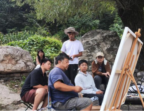 美术系 2022 级师生来到河南省林 州市太行山区石板岩镇的高家台村及其周边进行写生。以风景写生来提高学生的 审美能力、概括能力、创新能力,进而锤炼绘画语言,拓展创新思维。针对各专 业学生的实际情况,师生们以风景写生为训练手段,把自然的视觉形态转化成与 所表达的精神情感相契合的艺术语言。