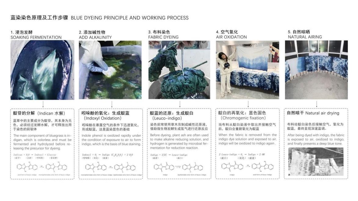 岜沙苗寨作为中国最后一个持枪部落,其祭树仪式与芦笙舞表演展现出强烈的原始信仰与文化韧性,激发了同学们对少数民族视觉符号与现代设计转译可能性的探索。此外在非遗传承人的指引下,师生们关看亮布制作的完整过程,同学们认真观察亮布的色彩肌理、制作工艺,深刻体会传统技艺中“天人合一”的造物哲学。