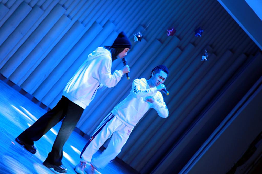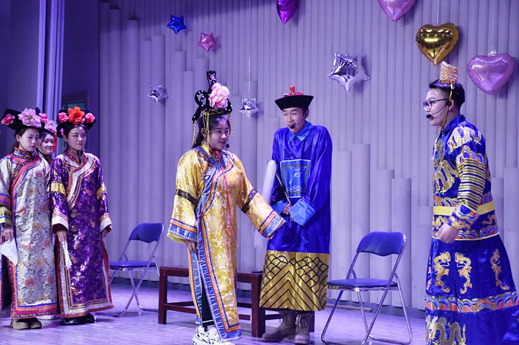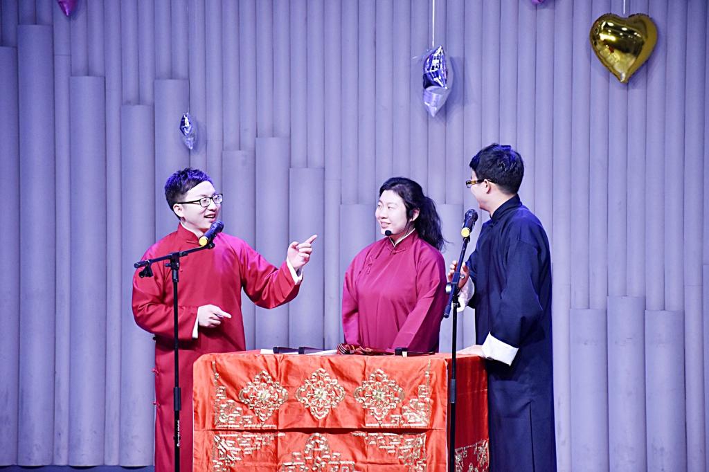 、对班级的爱表达在每一个动作当中。2017级王晗和栾欣遥用歌曲《我对自己开了一枪》《三十八度六》告诉同学每个人都是独一无二的,要尽情释放青春。绘画四班全体女生用舞蹈《Perfect tone》致敬,让观众眼前一亮,用帅气的舞姿赢得观众的欢呼喝彩。晚会最后,张磊老师、刘潇老师、刘正同学带来的相声《为艺术拼了!》,把说学逗唱这些贴近现实生活的特点和高度集中的戏剧冲突等喜剧元素,转化为可视形象,让同学们切实感受到为了艺术,辅导员在拼。团学组织成员用《大风车》《隐形的翅膀》等歌曲改编创作的舞蹈串烧展现团学团结力量!晚会中游戏环节也为同学们带来接连的惊喜,场上场下频繁的互动,有趣激烈的游戏环节,逗得同学们捧腹大笑。