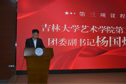 第一次全体会议在嘹亮的《中华人民共和国国歌》旋律中拉开序幕。第一项内容由学院团委负责人李洋老师讲话。学院团委始终坚持以习近平新时代中国特色社会主义思想为指导,围绕学院党政工作中心和上级团组织工作重点开展工作,并在学院师生的共同努力下,获得了“2023年度先进基层团委”称号,培养了一批认真负责的团学干部。希望换届的新同学能够围绕中心、服务大局,在团学组织中、在服务同学时,真正提升自己综合能力素质,为学院的繁荣发展添砖加瓦,向辉煌未来携手共进。