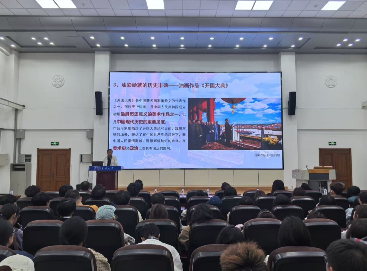 他从哲学思想、国家象征、红色精神谱系等多个层面展开论述,并结合建筑、美术、音乐、舞蹈等艺术形式的经典案例,生动讲解了中华文明精神标识的艺术化呈现与跨文化传播。他指出,艺术在文明传承中发挥着独特而不可替代的作用,既要根植中华优秀传统文化,也要勇于探索创新,使中国艺术在世界文明的交流互鉴中焕发新的活力。