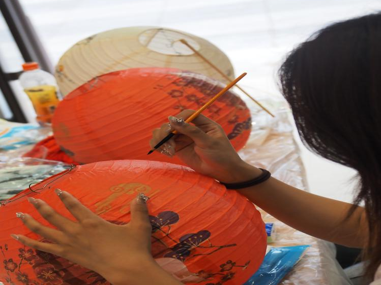 的同学们各显神通,以自己卓越的专业技能尽可能地创作出大家心目中的理想作品。从设计到绘画,艺院学子有条不紊的进行着。巧妙构思,精心创作。原本空白的纸灯笼和团扇 ,已然变成色彩斑斓的“艺术品”。