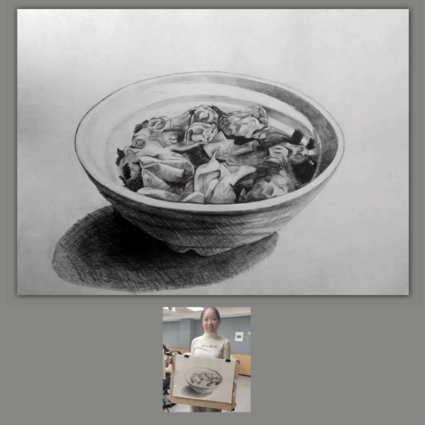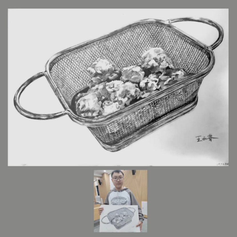 以“发挥美术铸魂育人功能,创作实践收获审美体验”为主旨,来自法学院、行政学院、化学学院、商学院、计算机科学与技术学院、植物科学学院、电子科学与工程学院等多个学院不同专业学生参与本次课程。经过一个学期的理论学习与专业训练,学生们的素描作品质量得到提高,具备一些可欣赏属性。
