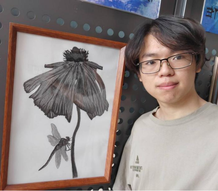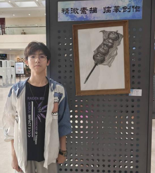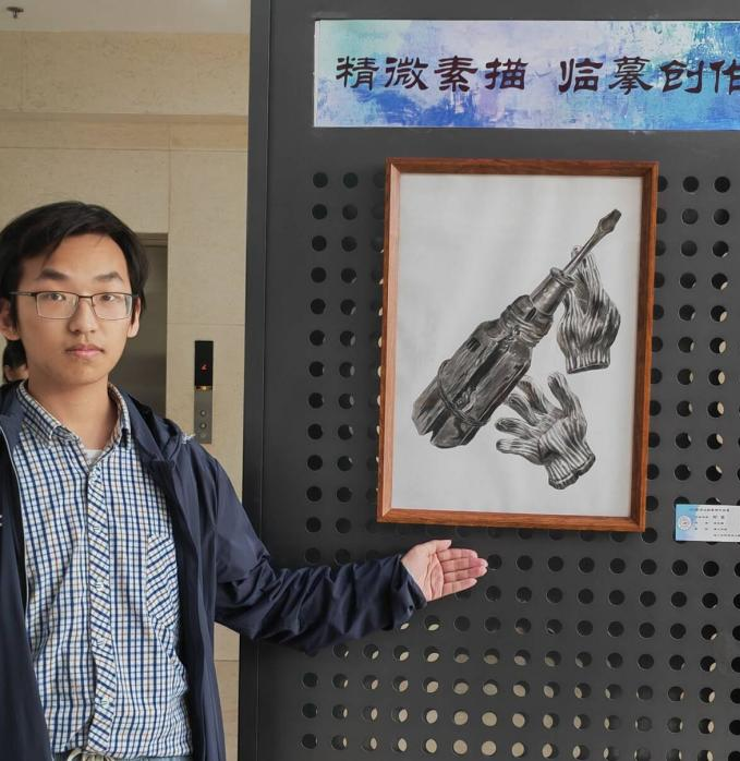 画展上,2023级唐敖庆理科试验班物理学基地魏文波同学的作品《猫的凝视》吸引了众多观众驻足观看。他感言:“这门课让我对素描作品有了基本的认知,知道了如何制作素描作品,从线稿到铺调子,再到擦蹭和补细节,通过亲手完成一幅对于艺术门外汉来说较为复杂的作品,我既体会到了绘画艺术的魅力,也一定程度上削减了对艺术创作的畏惧。现在,再去看大师的素描作品,我能切身体会到大师技艺的高超和艺术巧思,也有兴趣亲手绘下生活中的所见。我认为亲手创造事物是有魔力的,它令人着迷,让人能感受到自己的价值。作为物理学专业的学生,创造殊为不易,这幅作品也算是稍稍弥补了这种空缺吧,我认为我的时间用得很值。感谢老师们引领我们走过了一段难忘的艺术之旅。”