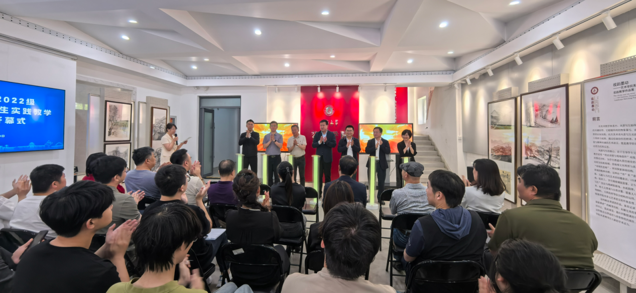 院长郭春方在致辞中指出,风景写生是绘画专业实践教学的重要环节,不仅是锤炼学生观察力与表现力的实践课堂,更是连接艺术与生命、传统与未来的精神桥梁。此次展览既是风景写生教学成果的集中展示,也是艺术教育与文化传承的生动实践。2022级的董安莹同学作为学生代表发言,老师们通过对画作的取舍构图等方面给予细致的个性化指导,鼓励同学寻找属于自己的艺术语言。随后,现场嘉宾一同开启启动仪,师生们一起见证本次作品展开幕。