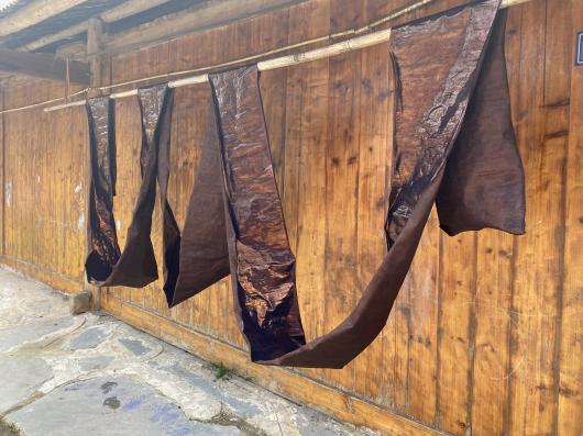 岜沙苗寨作为中国最后一个持枪部落,其祭树仪式与芦笙舞表演展现出强烈的原始信仰与文化韧性,激发了同学们对少数民族视觉符号与现代设计转译可能性的探索。此外在非遗传承人的指引下,师生们关看亮布制作的完整过程,同学们认真观察亮布的色彩肌理、制作工艺,深刻体会传统技艺中“天人合一”的造物哲学。